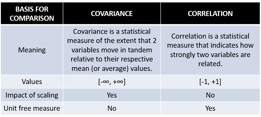 상관계수는 변수가 표준화 될 때 관찰 할 수 있는 공분산의 특별한 경우입니다.